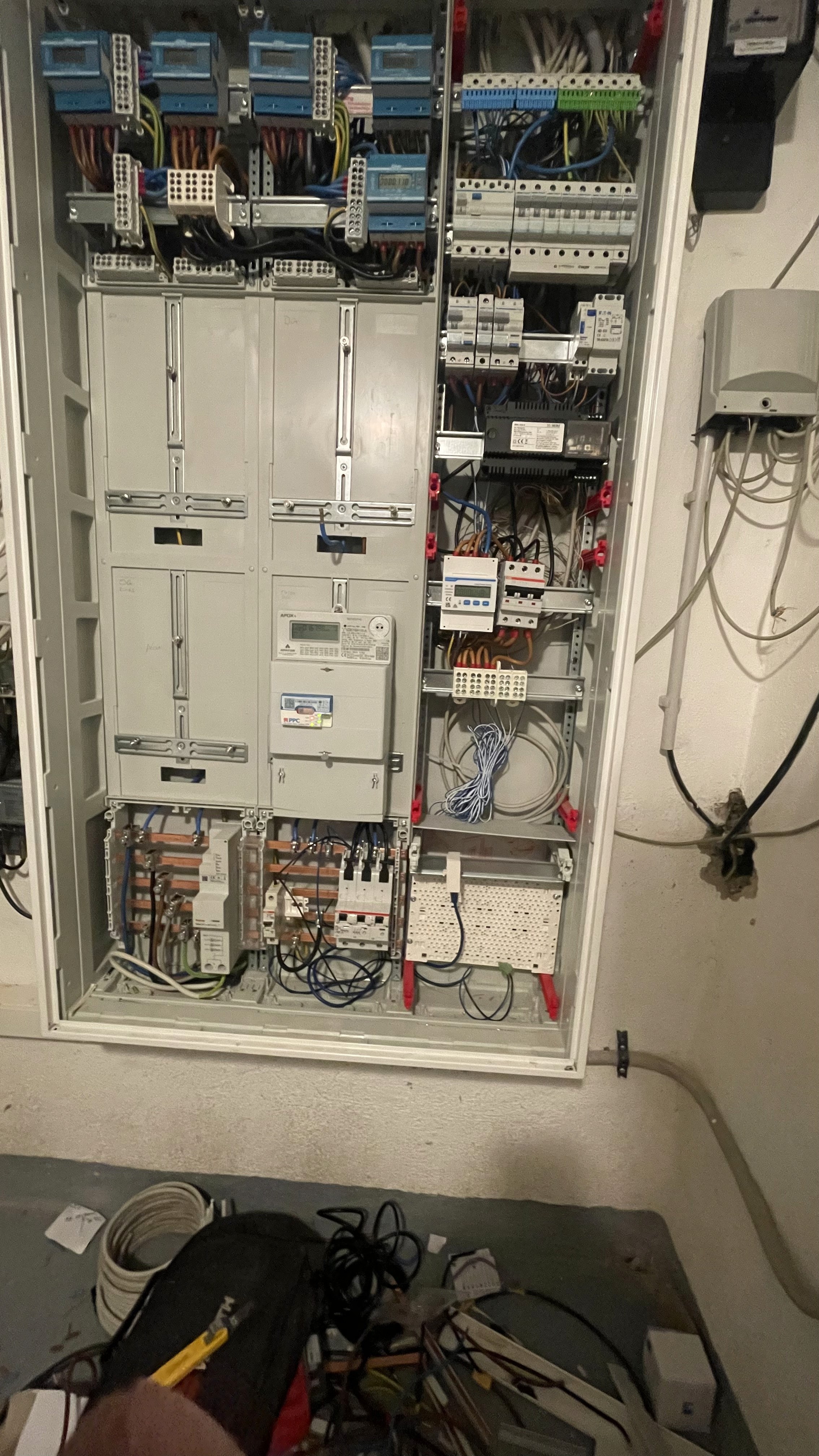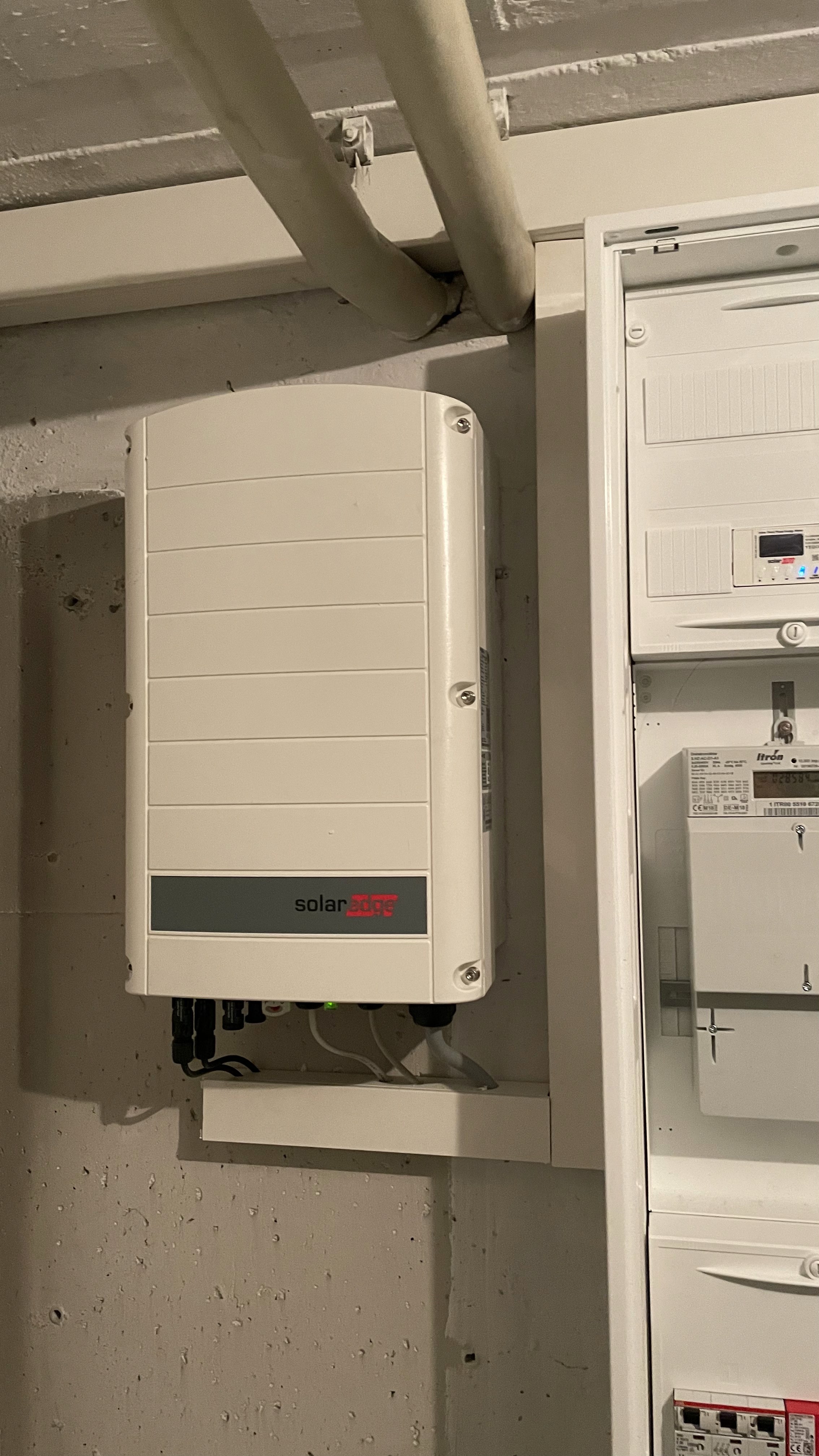 Ein klarer und übersichtlicher Raum, der technische Präzision verkörpert. Herzstück ist ein Hybrid-Wechselrichtersystem mit kompaktem Design, das mit sauber verlegten Kabeln und Schutzkomponenten für zusätzliche Sicherheit sorgt. Ein strukturierter Aufbau prägt die Anlage, ergänzt durch einen modernisierten Verteilerschrank mit schlichter, aber dennoch übersichtlicher Optik. Intelligentes Monitoring sorgt für Transparenz und unterstreicht Effizienz und Benutzerfreundlichkeit.